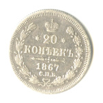 20 копеек — Орел 3 типа 1867 СПБ НI