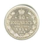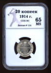 20 копеек — Орел 4 типа 1914 СПБ ВС. В Слабе® MS 65