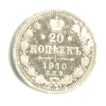 20 копеек — Орел 4 типа 1910 СПБ ЭБ. коррозия поля
