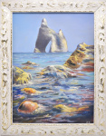 Картина «Яхта на волне». Автор: Г. Гусева. Масло, холст. Размер 43×33 см