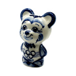 Фарфоровая фигурка Олимпийский мишка. роспись хохлома, 10×8 см