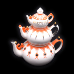 Сувенир «Новгород» в виде трех чайников, фарфор, роспись, золочение, Бронницкий завод «Возрождение». Размер 12×14 см