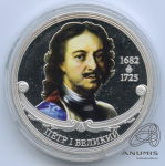 Жетон монетовидный «„„Медаль Великие Государи России „„Петр I Великий““. Императорский Монетный Двор. С сертификатом подлинности Императорского Монетного Двора. Покрытие: серебро 999/1000 пробы. В капсуле. Диаметр: 40 мм““»