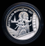 Медаль «Фестиваль молодежи 1957». В капсуле, с сертификатом. Серебро 925 пробы