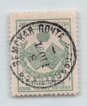 Российская Империя. Земская почта.Тотьма. Вологодская губ. 3 коп. синяя, красн., ж-коричн. и золотая № 1(Соловьев 40 $) Земское гашение АВГ 1895