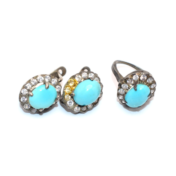 Комплект украшений: серьги и кольцо. Со вставками. Серебро 925 пробы. 13,14 г