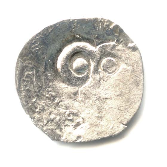 Деньга удельная. Лицевая сторона: птица влево. Вес 0,77 г (Русское царство)