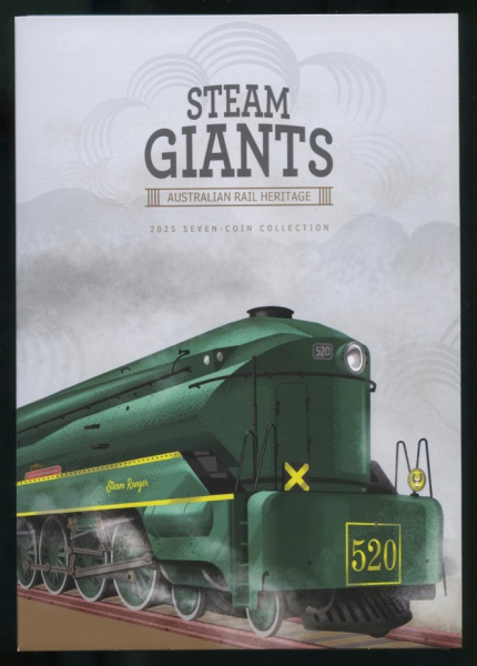 Набор из 7-ми монет В упаковке монетного двора. Паровозы. Каждая монета в отдельной коин карте 2025. Новинка! (Австралия)
