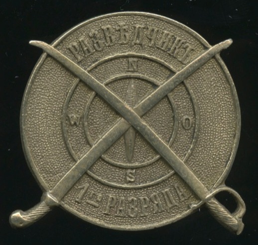 Знак «Российская Империя. Знак Разведчик 1-го разряда. Никель». Крепление: заколка. Тяжелый, редкий (Российская Империя)