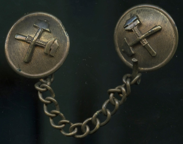 Знак «Российская Империя. Должностная пряжка — заколка на плащ Инженерная. Бронза». Крепление: винт. Тяжелый 1900 годы (Российская Империя)