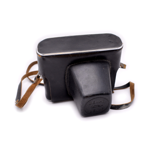 Фотоаппарат пленочный «Зенит-Е». Объектив: Гелиос-44−2. Чехол (СССР)