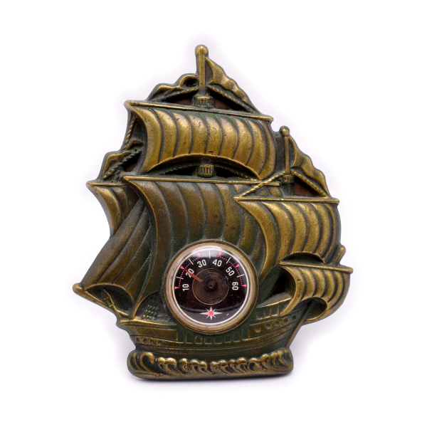 Термометр Парусник. Латунь. Размер 12,5×16 см (СССР)