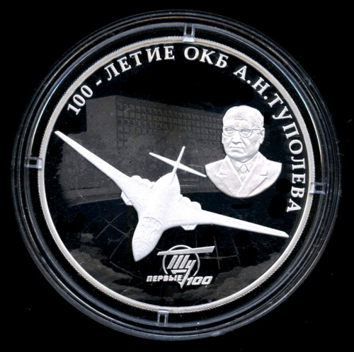 3 рубля — 100-летие со дня создания ОКБ А.Н. Туполева — В капсуле, с сертификатом. Банковская сохранность монеты 2022 СПМД (Россия)