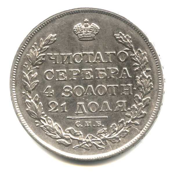 1 рубль — Конец скипетра доходит до буквы О 1813 CПБ ПС (Российская Империя)