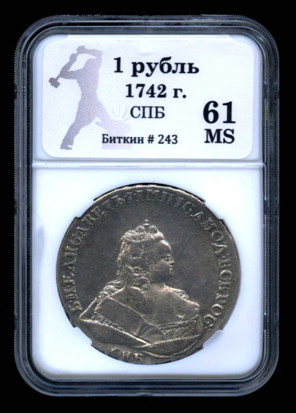 1 рубль — Портрет Елизаветы. Петербургский тип 1742 CПБ. В Слабе® MS 61 (Российская Империя)