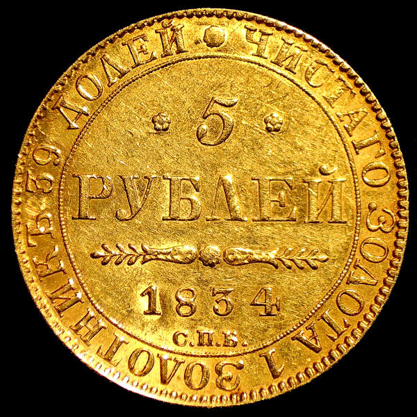 5 рублей — Орел 1832 — 1843 1834 CПБ ПД. Редкий год CПБ ПД (Российская Империя)