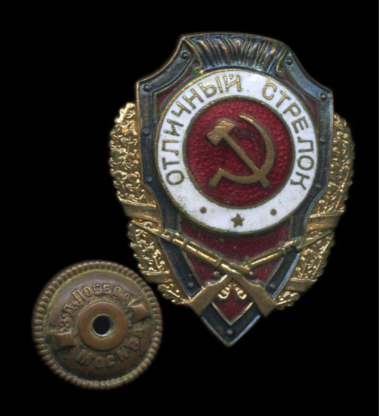 Знак «Отличный стрелок». Крепление: винт. Тяжелый, эмаль (СССР)
