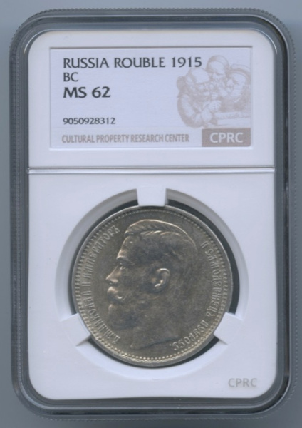 1 рубль — Портрет Николая II 1915 ВС. В слабе. В слабе CPRC MS 62 (Российская Империя)
