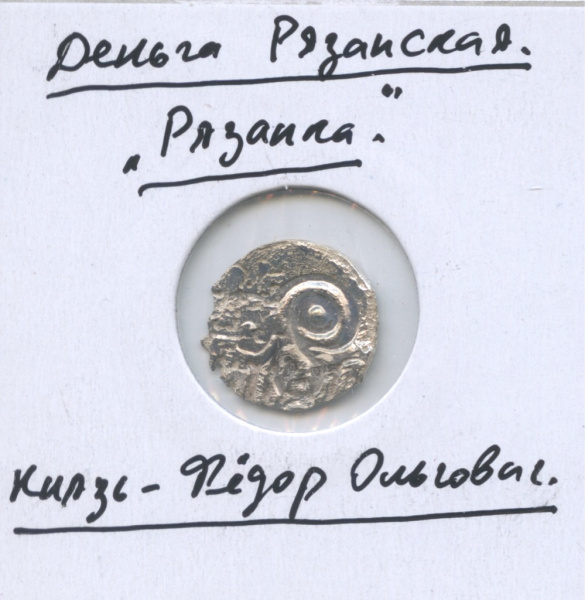 Деньга рязанская «Рязанка». Князь Федор Ольгович. В холдере (Русское царство)