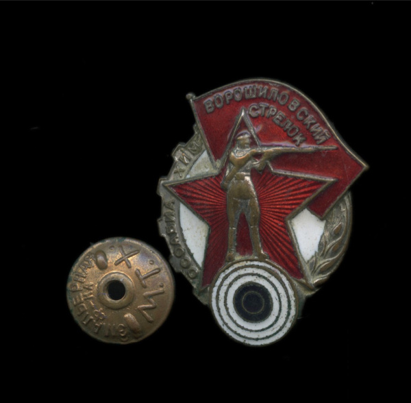 Знак «Ворошиловский стрелок». Крепление: винт. Тяжелый, эмаль (СССР)