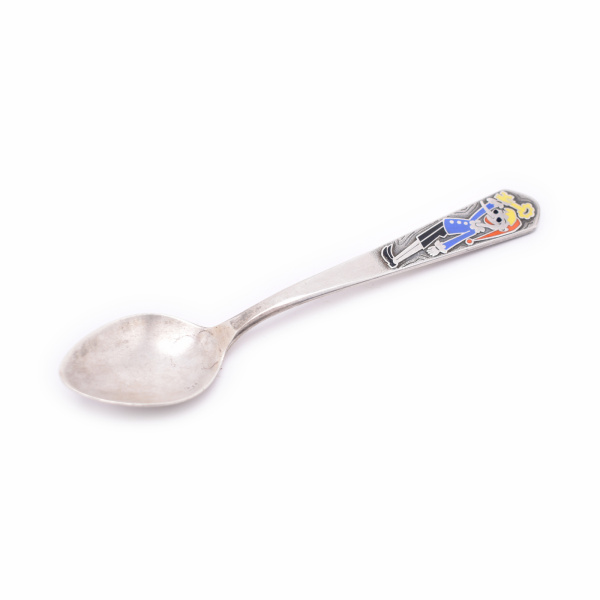 Чайная серебряная ложка «Буратино» 916 пробы серебра, эмаль. 29 г. 14 см (СССР)
