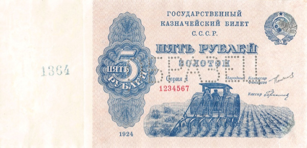 5 рублей золотом Образец 1924. Две стороны отдельно (СССР)