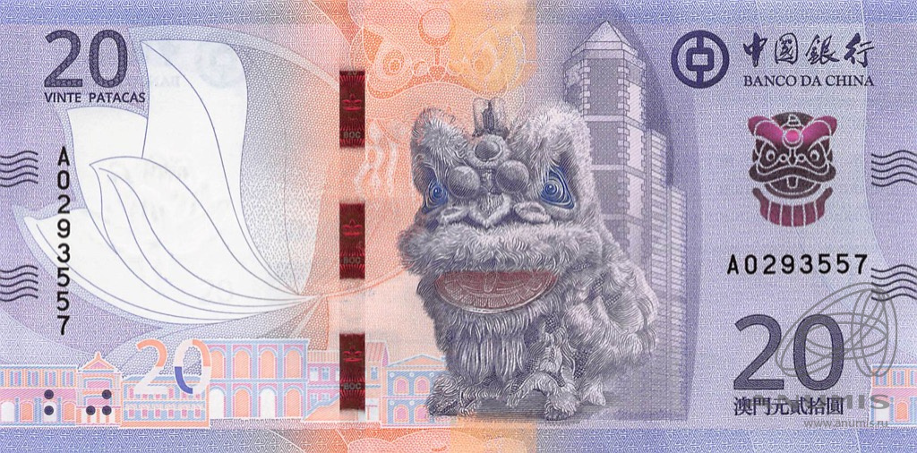 Сторона 1: Фасады зданий, здание Банка Китая (Макао), Южный лев