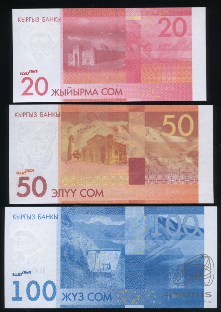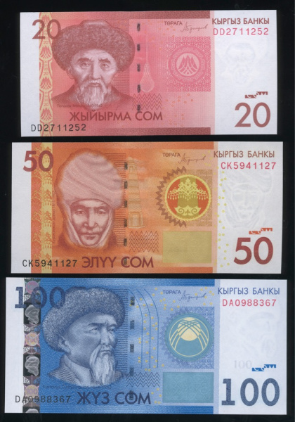 Лот банкнот «20, 50, 100 сом». 3 шт