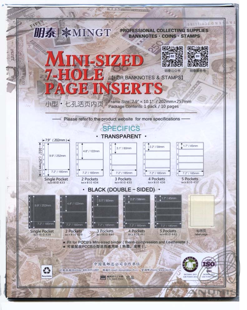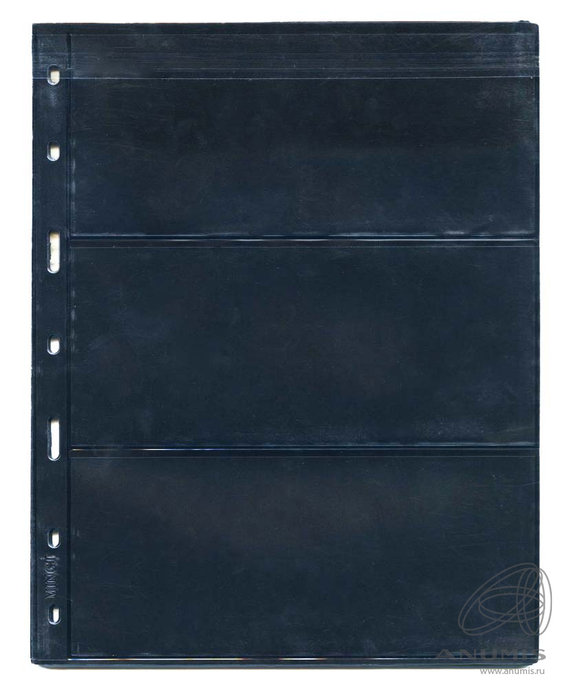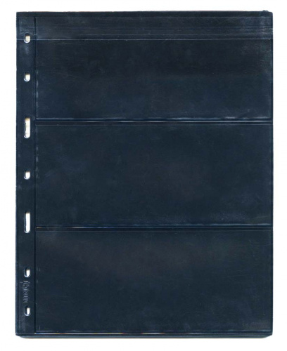 Листы MINGT в альбом OPTIMA на 3 позиций под боны и марки двусторонние на черной основе, упаковка 10 штук, материал ПЭТ. Размер 257×202 мм