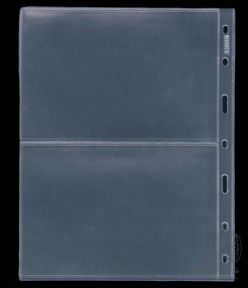 Листы MINGT в альбом OPTIMA на 2 банкноты упаковка 10 штук, материал ПЭТ. Размер 257×202 мм