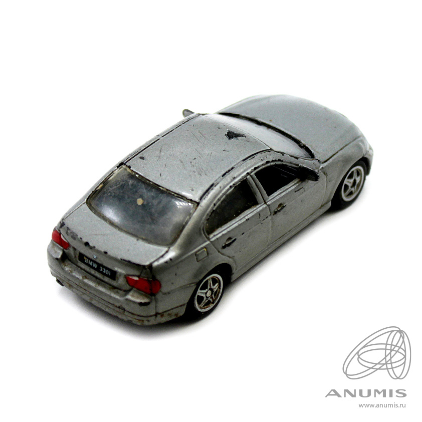 Модель машины BMW 330i. Дефекты: задние колеса плохо прокручиваются, размер 7×3 см