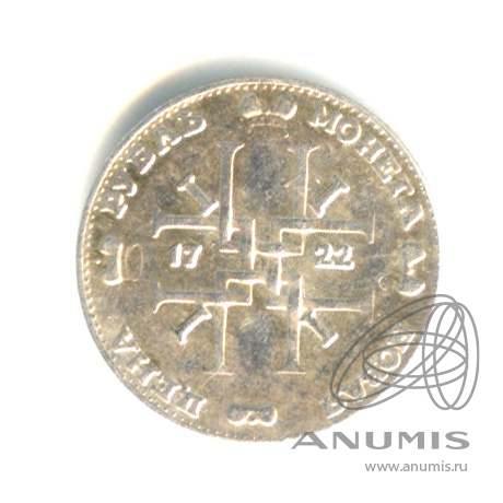 Жетон водочный «1 рубль 1722». Серебро 999 пробы