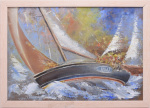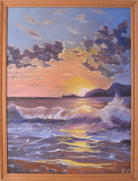 Картина «Солнце садится за скалы». Автор: Галина Гусева. Масло, холст. Размер 40×30 см