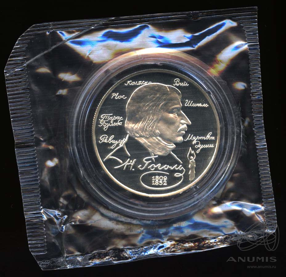 Юбилейная монета: 2 рубля 1994 года «185-летие со дня рождения Н.В. Гоголя». Выдающиеся личности России. Российская Федерация: Банк России (1992 — 1996). Монетный двор: Московский монетный двор, г. Москва. Серебро 500, 16 г, ø 33 мм, Гурт: Рубчатый. Тираж: 250000 шт. Серия: Выдающиеся личности России.